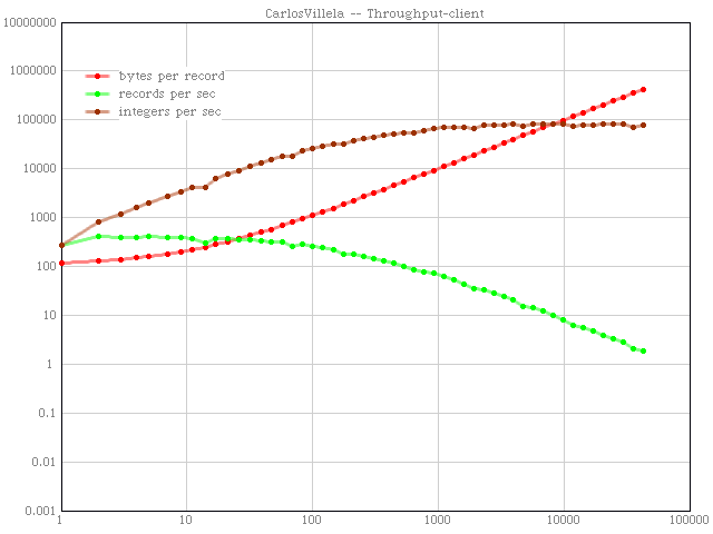You can observe some strange behaviour of records per second at small object