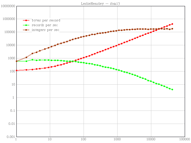 All results are plotted to the same scale with this custom program written in open source Squeak Smalltalk. I wrote a new program because I couldn't find one that could read tabbed text, write gifs, and do log plots all at the same time. I think my charts look much better than excel's. I hope you agree. If you look closely you will notice that the lines are transparent and anti-aliased. This let me use wider lines which look better in thumbnail. .