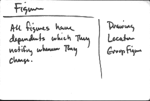 considering how to give students a feel for object design. The cards document HotDraw,